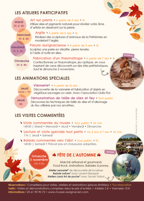 Découvrez le programme complet de l'évènement : https://www.musee-aurignacien.com/fr/fete-de-lautomne-au-musee-dimanche-2-novembre